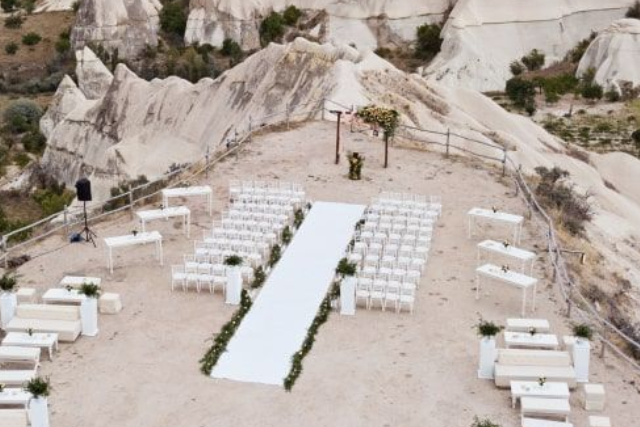 説到土耳其,當然不得不提熱氣球。土耳其的Museum Hotel所有房間都以洞穴原型設計,而婚禮場地更在懸崖邊上,無論準新人是喜歡帳篷還是戶外婚宴,都能滿足!