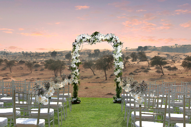 除了極寒之地的冰教堂,怎麽少得了極熱之地沙漠?阿拉伯聯合酋長國(阿聯酋)北部的拉斯海馬沙漠中的麗思卡爾頓酒店就擁有一個超浪漫的婚宴場地,你可以在沙漠中心行禮,坐在獵鷹甲板上,或在沙丘平台上步入證婚台。