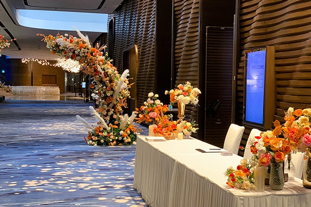 賓客們來到大宴會廳的門口,定必已受極具氣派的設計所吸引,而在開揚寬敞的宴會廳前廳設立接待處就更顯得體。大宴會廳可筵開80席(960位),最多可款待1200名雞尾酒會賓客,間隔靈活,可因應不同用途作出4個不同組合,為新人及賓客提供更彈性的場地選擇。