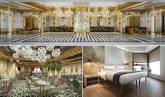 歷山酒店的宴會大禮堂採用維多利亞宮廷式設計,加上大型水晶吊燈及金色鏤花大門,令婚宴場地更顯貴氣。