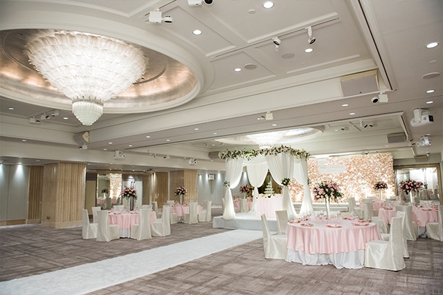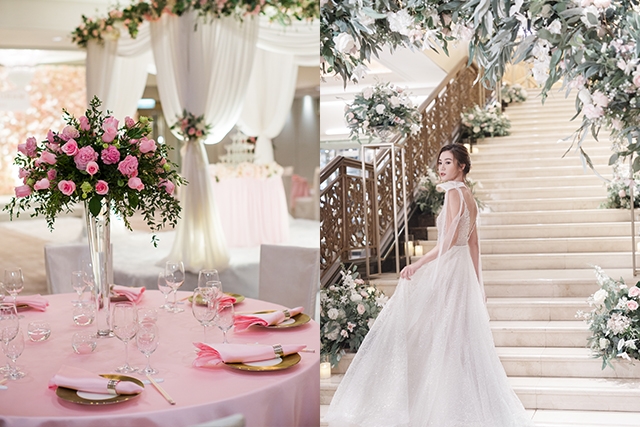 香港朗廷酒店場外浪漫高貴雲石樓梯,盡顯堂皇氣派。而宴會廳面積佔地達490平方米,新人可選擇個人化時尚午宴或是經典晚宴,場地設計以中式藝術文化為主題,綴以瑰麗豪華水晶吊燈及金絲牆板,配合西式粉紅花藝,囊括中西獨特元素,如此令人驚艷的典雅婚宴場地,讓一對新人的完美婚禮變得更加難以忘懷!米芝蓮理想婚宴 獨家優惠價試菜體驗