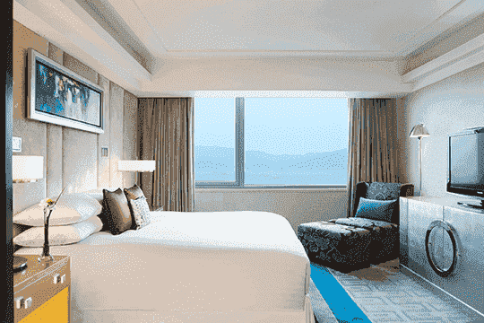 新人在24/2婚宴展預訂指定酒席,蜜月套房可免費升級至副總統套房。這間面積逾1,500平方呎的豪華套房,設有寛敞客廳、獨立房間及飯廳,更面向南中國海廣闊海景。新人經過一整天婚禮和宴會後,可享一晚美滿舒適的蜜月之夜。
