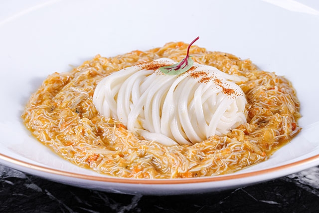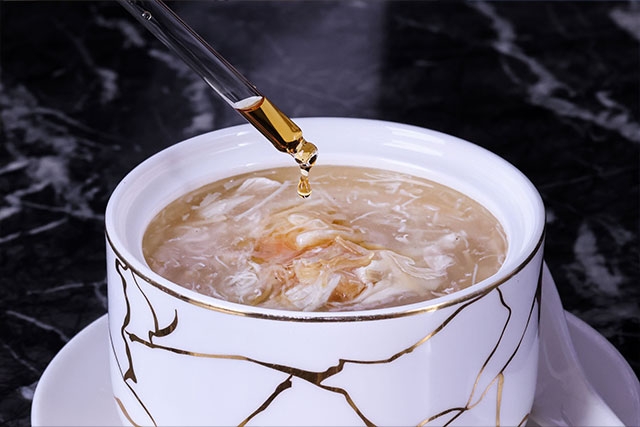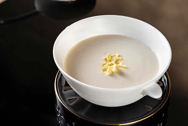 採用鮮甜蟹肉與上乘瑤柱慢火熬製成濃郁湯羹,席前按個人口味以滴管加入Hennessy V.S.O.P干邑,使湯羹帶有餘餘酒韻。