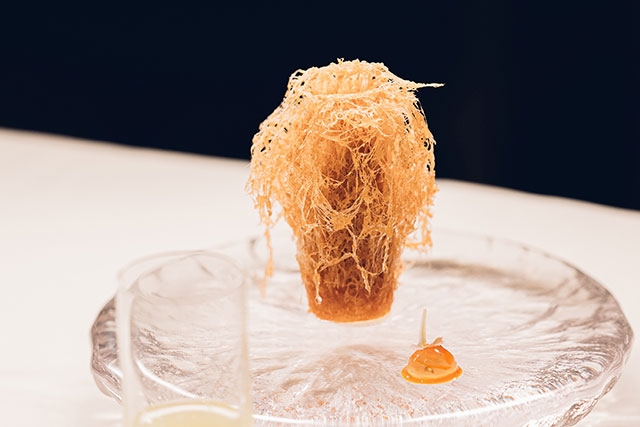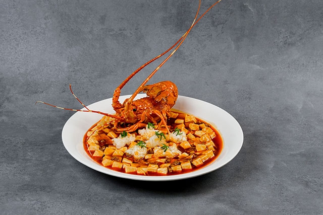採用本地新鮮龍蝦,以低溫油泡封存龍蝦鮮甜精華,本地龍蝦肉質彈牙飽滿,餐廳更會於席前為菜式增添帶有花香和蜜餞的風味的干邑,與龍蝦的鮮甜互相輝映。