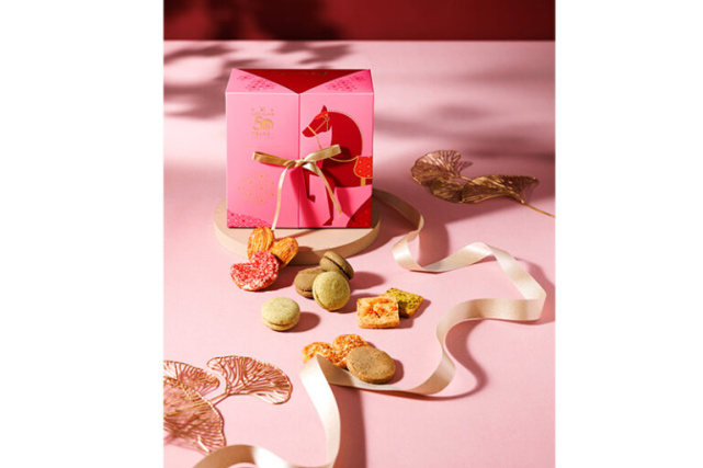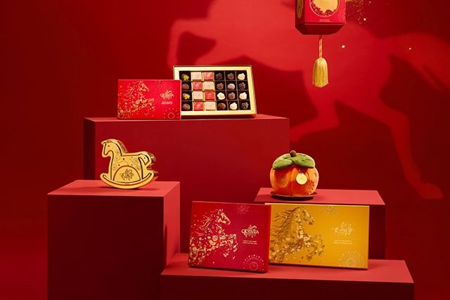 賀年系列同時涵蓋多款朱古力、曲奇及蝴蝶酥禮盒,當中蝴蝶酥系列更推出清新菠蘿、荔枝及朱古力可可豆等全新口味。駿馬迎福新年雜錦福袋則以以瑰麗紅色駿馬作主題,滿載多款驚喜產品,定必滿足到你的味蕾,當中包括經典54% 黑朱古力、白桃朱古力、烏龍茶軟心朱古力等,還有全新鹹蛋黃腰果及雜錦果仁撻,口味和口感同樣豐富,帶來多重甜蜜溫馨的祝福。