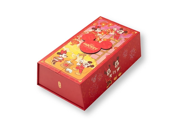 禮盒以濃厚的新春喜慶氛圍為設計主題,盒面印著米奇與米妮為預備新年的甜蜜互動,打開盒蓋更有驚喜,一個滿滿的「福」字隨即映入眼簾,寓意「福氣滿滿、幸福吉祥」。