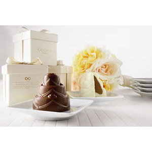 一般在婚宴上的蛋糕只供拍照﹑慶祝之用,只能遠觀,不能食用。最近GODIVA就推出結婚蛋糕巧克力禮盒系列,這些精美可愛的結婚蛋糕是出自有「結婚蛋糕達文西」之稱的世界知名糕餅設計師蘇菲亞.韋恩斯托克之手,並且由一個精緻的禮盒盛載著。味道方面有純黑巧克力醬牛奶巧克力和榛蓉醬白巧克力,能滿足新人不同的口味需求。