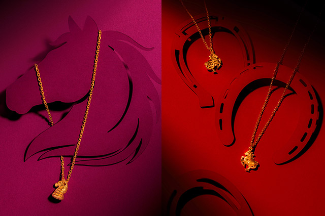 而西洋象棋馬造型吊墜則以騎士為靈感,馬首昂然、線條俐落沉穩,底部配以金錢通花與圓潤金珠,寓意八面玲瓏,在人生棋局中全力拼勝。兩款吊墜兼具造型感與象徵意義,既是日常造型中的風格亮點,亦是饋贈摯愛或犒賞自己的心意之選,低調卻耀眼,皆是別具心意的吉祥之選。