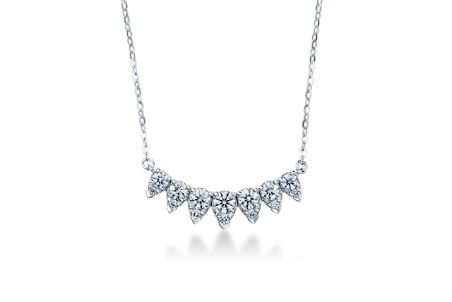 以梨形鑲嵌的鑽石串連而成的項鏈,中央部分展現柔和的曲線,這款設計使用了一種獨特的鑲嵌技術,讓項鏈能自然地緊貼佩戴者的頸項和胸前。