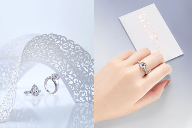 鑲嵌一顆璀璨主石,並以一圈精緻的鑽石環繞,兩者互相輝映,結合起來不但更能散發迷人光芒,也令中央單顆鑽石更顯突出。
