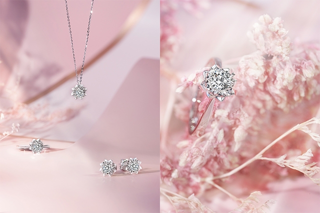 如果另一半是活潑系女友,不如就為她送上充滿甜蜜氣息的鑽飾。這款鑽飾套裝以心形爪設計將鑽石牢牢嵌入,同樣配合「放閃車花」工藝讓主石的視覺效果大增了一倍,倍添閃亮的效果,讓女朋友猶如太陽花般絢麗奪目,佩戴起來都更顯可愛動人。讓愛環抱 見證幸福時刻
