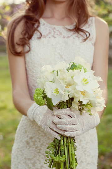 短款手套延伸了裙袖與手套之間的距離,手臂看起來會修長一些,荷葉邊的手套更讓前臂感覺纖幼,帶來顯瘦效果。比起長手套帶來的優雅感覺,短手套看起來更甜蜜可愛一些,因此適合較嬌小的新娘。