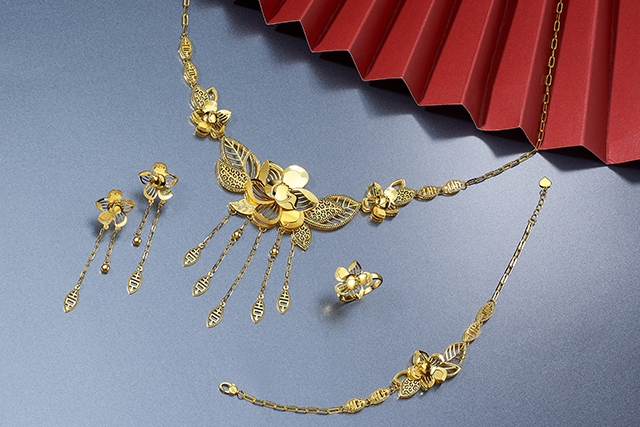 六福珠寶結婚金器推介2022|Goldstyle「花漾紅妝」黃金首飾套裝