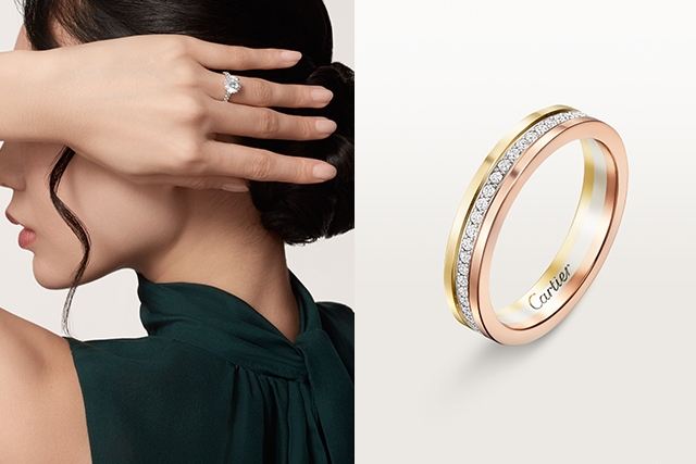 疊戴不僅是佩戴方式,更是一種時尚表達。單戴簡約,疊戴則營造層次感,令手指線條更修長,並突顯獨特品味。卡地亞求婚鑽戒設計×結婚對戒疊戴搭配秘訣