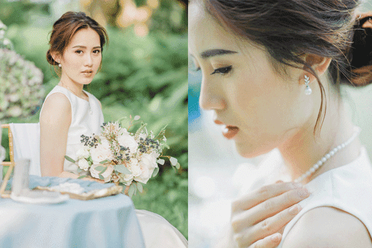 一條簡約的珍珠頸鏈,是Sweetheart或一字領婚紗的最佳拍檔。本地珍珠飾品品牌made of pearl 的淡水珍珠頸鏈及手鏈,款式經典大方,色澤圓潤,最難得的是每顆珍珠皆經嚴格挑選,適合喜歡簡約美的新娘子。