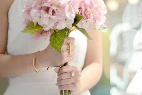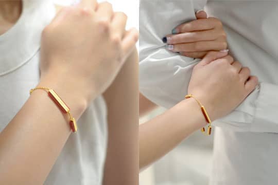 見到呢條精緻嘅黃金瑪瑙手鍊,小編都「嘩」一聲!大愛呀!除咗白色婚紗外,粉橙、粉黃、香檳金等同系迎賓晚裝同樣襯到絕。平時去街,唔覺意露出纖幼嘅手腕時,都係show off好時機。