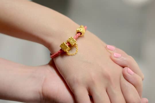 依家流行串飾手鏈,自由搭配心水串飾。呢個「愛情系列」足金雙囍串飾充滿婚嫁氣氛,另一款「可愛系列」足金心形串飾就夠別緻。姊妹們一於送返條俾新娘,等佢時刻戴住呢份心意啦。