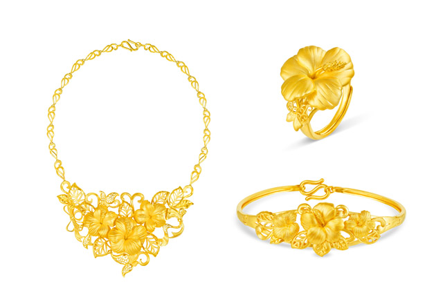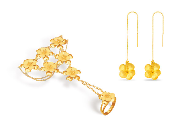 花好月圓、佳偶天成。傳統中式婚嫁中,花卉代表美好、幸福、吉祥。《花月佳期》婚嫁系列以盛放的五瓣花及大紅花為靈感,設計如繁花盛放的足金金飾,祝福一對新人開枝散葉、百子千孫、花開富貴!