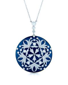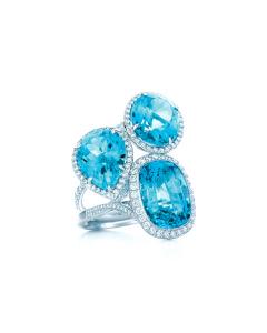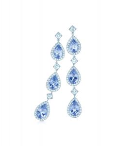 別了店子,我再也很少看到令人傾心的藍色鏈子。直到最近Tiffany & Co.推出Blue Look系列,才把這種驚豔再一次吸引我的視線。Blue Look系列的產品種類相當豐富﹕吊墜、戒指、耳環、手鏈、胸扣針、手鐲等,每款均以瑰麗的珠寶鑲嵌而成。其中尤以冷豔的藍色首飾最為奪目,如左圖的藍色銅鋰碧璽鉑金戒指,戴在白晢的肌膚上更為突出。而梨形紫藍色尖晶石及鑽石鉑金耳環,更是配襯婚紗不可或缺的首飾之一。