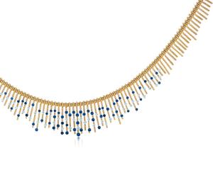 至於在配襯晚裝方面,Jean Schlumberger 設計的18K金鑲藍寶石及鑽石流蘇項鏈、琺瑯蘭花手鐲、鑽石配黑色亮漆斑馬胸針等,手工精緻之餘,更能突顯女性的高貴氣質。