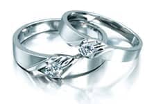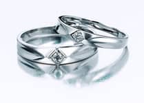 | 18K金鑽石對戒,男戒主石重約0.04ct,女戒主石重約0.02ct | 18K金「晴鑽」對戒,男戒主石重約0.20ct,女戒主石重約0.10ct |
