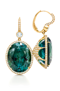 幾乎世上沒有女人願意拒絕的時尚經典品牌Tiffany & Co.剛推出最新寶石系列,相信所有的新娘看到那顆稀有的verdant green tourmalines,都會瘋狂似的愛不釋手。Tiffany & Co. 隆重呈獻這對卓爾不凡的綠碧璽耳環。這兩顆稀有的碧璽瑰麗而翠綠,每顆重超過15卡,相稱無暇。Tiffany & Co. 的寶石工匠以精湛的切割工藝將寶石雕琢成橢圓形,充分展露出寶石迷人的深綠色彩。耳環背面設計獨特,以18k金鑲鑽成尖端形,營造出優美的線條,無論正面、側面或背面均流露非凡的魅力。光線穿過典雅的弧形鑲邊,讓寶石綻放出閃爍奪目的光彩。