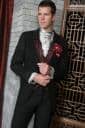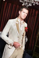 「其實,男士禮服才較多空間可以發揮,試想想,新人進場一刻,女士就必定是身穿婚紗,我們反而會建議將焦點放在男士身上,讓新郎矚目全場。所以,在進場時穿著的男禮則可以設計得特別一點,而其他環節的禮服雖然較低調,但我們的設計亦會在一些細節位置放上點點心思,在平實中見品味。其實有些準新郎都希望自己的禮服特別一點,曾經就有客人要求以Swarovski水晶鑲在禮服之上,誓要跟新娘子爭妍鬥麗。」