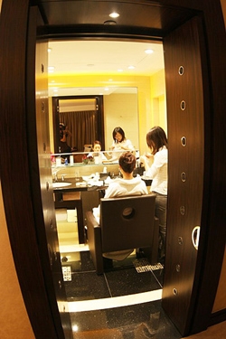如在家中化妝的話,盡可能安排一個較大的房間及準備一面大鏡子,一來方便化妝師;二來可以讓攝影師利用鏡子的倒影拍攝。如化妝過程是在洒店房間進行的話,完成化妝後更可到房間的落地大玻璃窗前拍一些「漫剪影婚紗照」以及與眾姊妹在床邊或長沙發上拍大合照。