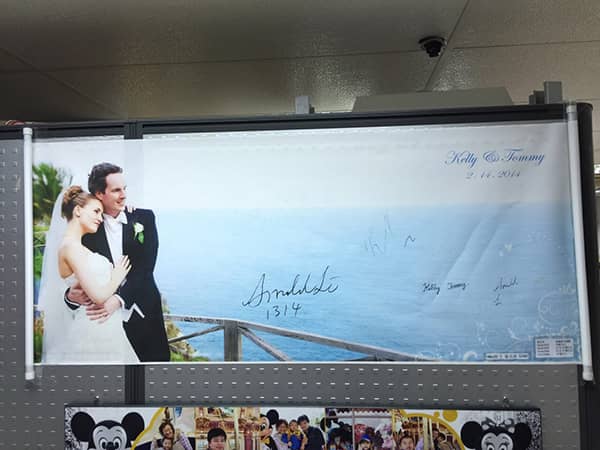 不少新人會忽視簽名冊的作用,其實當中包含每位賓客的簽名和祝福,彌足珍貴。如果想方便收藏的話,可印製能捲起來的簽名布;若打算放在家中作為裝飾之用,那麼可以直立擺放的摺頁簽名冊就最適合不過。