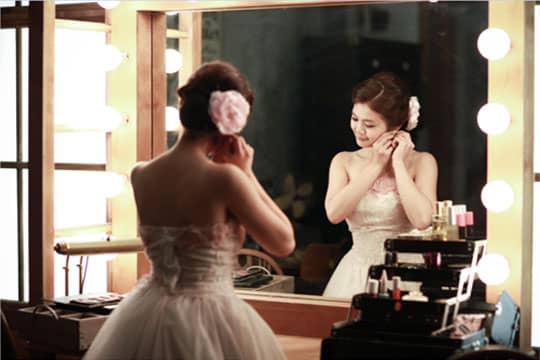 韓國:化妝和髮型由不同部門負責,完成一part後再到另一區繼續,最後才由「阿珠媽」協助換禮服。妝容以祟尚自然為主,連遮瑕也不用,適合白滑無瑕的新人。可是化妝師未能解決我黑眼圈、眼袋和大細眼問題,只能靠後期修圖。
