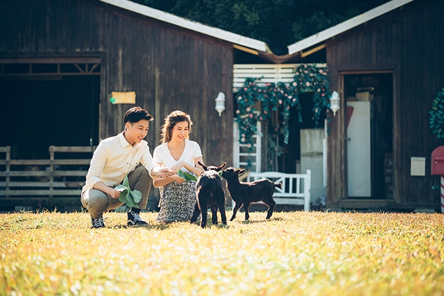 「影Prewedding之前,攝影師同化妝師都會主動同我地溝通當日點影好,我哋揀咗喺影樓、遊艇及農莊影相。 拍攝當日,攝影師呀Chu同助手教我哋點樣擺pose,化妝師Ady亦非常細心,最後出到嚟啲相,我啲朋友都勁讚。」
