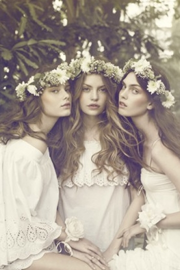 拍攝 pre-wedding,如果想感覺更具歐陸園野氣息,花花頭飾方面可以選擇較誇張的花冠款式,而髮型方面,微曲的散髮就最適合不過了。