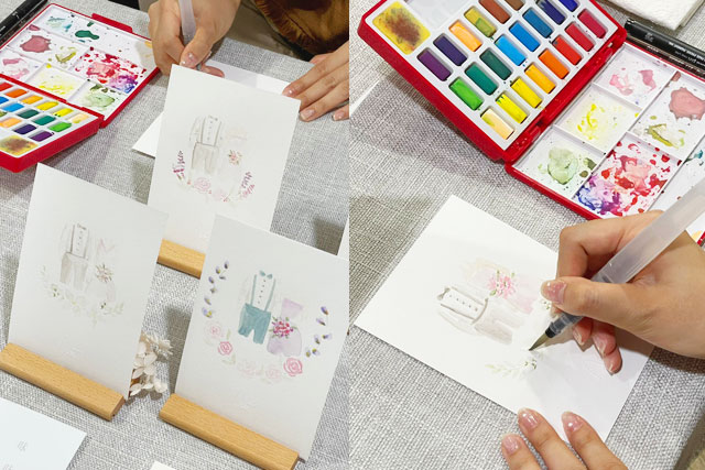婚禮⼿作體驗⽇將會為新人即場繪製專屬⼼意卡,現場落單即享九折優惠。