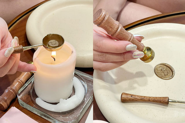 婚禮⼿作體驗⽇將可讓新人嘗試製作⼿作蠟封,於市集內購買任何火漆⼯具或產品減$50,預訂客製化火漆章成品85 折優惠,客製化蠟封9 折優惠 (100 套或以上)。