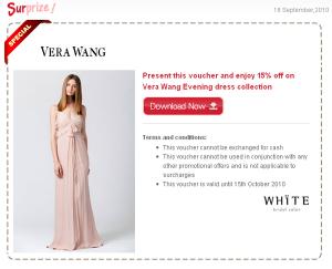 大家只要登入新婚生活易的主頁,就會在頁面的左上角看見搶眼的「Surprize﹗」,頭炮驚喜是準新娘都愛死的國際婚紗大師Vera Wang晚裝15%優惠﹗喜歡Vera Wang的朋友千萬別錯過﹗另外,我們預定每週為大家送上不同的名牌星級驚喜,包括Jo Malone、The Luxe Manor Hotel、Jackie Wang Photography等等,想知道優惠的詳情以及細節,敬請密切留意啦﹗