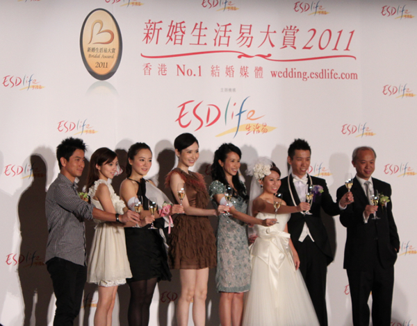 今天是婚界一年一度的盛事 — 《新婚生活易大賞2011》頒獎典禮,於中環的四季酒店舉行,除了有一眾得獎單位外,大會亦講來剛新婚變成「靚太」的莫文蔚小姐、即將結婚的粱慧恩 (Viann)、范振鋒及未婚妻李思欣,以及同樣剛成為人妻的陳貝兒小姐。