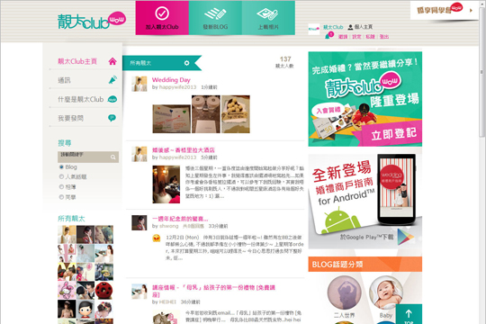 2. 大家亦可在「婚享同學會」主頁或「靚太Club」主頁,使用左邊的搜尋功能,只要輸入你想尋找的關鍵字 (例如:婚紗、行禮、酒席),便可找到所有相關的Blog或話題: