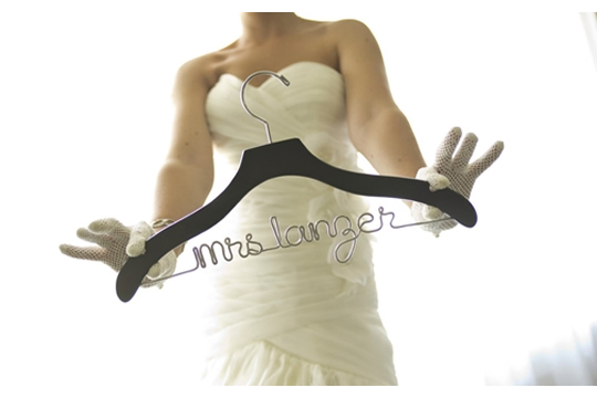 最後用絲帶把字母掛上,靚靚結婚衣架大功告成!