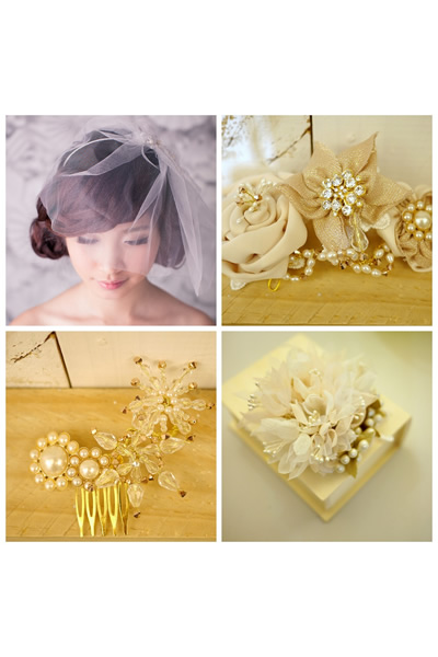 婚禮當日,新娘大多會束髮髻,簡單得來感覺又比較高貴,還可以配搭自己喜歡的頭飾。然而,除了傳統的頭紗及小皇冠之外,新娘頭飾已越來越千變萬化。不少新娘務求於婚禮當天可以最獨特的一面示人,都會四出搜尋既精緻又特別的手製頭飾去配襯造型。不過,很多婚紗小店租借特式手製頭飾的價格都相當昂貴,一般租借三日兩夜已需要數百元,想借多兩三個襯晚裝,租借價可能會令人立時為之而卻步。因此,近年,專為新娘而設的 D.I.Y 手製頭飾工作坊越來越受歡迎,其價錢除了相對較實惠之外,新娘更可把頭飾據為己有,將來有隆重場合都可以再用。專門製作高級訂製的婚禮帽子、頭飾及配飾小店 Being of Love,創辦人 Irene 是香港少數的手工帽匠之一。從自學到倫敦深造,Irene 一直堅持全人手製作,以傳統的造帽技巧創作婚禮帽子及花朵頭飾,風格浪漫華美而不落俗套,務求為新娘度身訂造完美脫俗的婚禮造型。 Irene 更會定期舉辦為新娘而設的手工頭飾工作坊,教授各種頭飾製作技巧。而二月中舉辦的 "Be a Headpiece Maker" 工作坊,Irene 就會親自教大家製作四款清麗的婚禮頭飾 (圖一)。