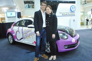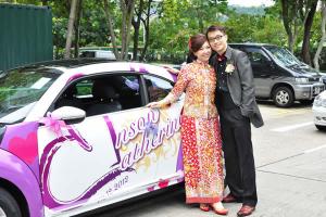 花車以他們結婚特設的專屬標誌為中心,非從事設計工作的Jason以準太太喜愛的紫色為車身的主色調,再以不同大小的心心襯托,愛意滿滿的。得知他背後那份心意,Catherine坦言很感動,在場的傳媒朋友都直言:「好冧呢!」是次得獎,另一驚喜是得獎者可免費任用甲蟲車一個月,而最巧合的是,他們領獎後的第三日,就正是他們的大婚之日,Jason可以夢想成真,用親手設計的花車迎娶Catherine。