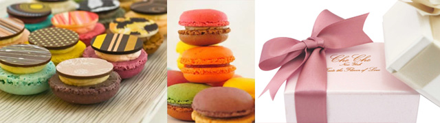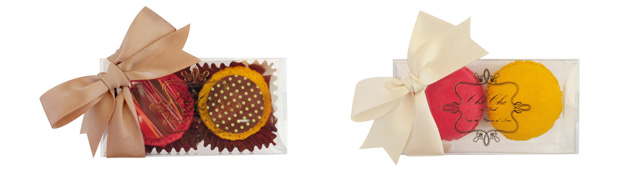 品牌設有10多款口味的瑞士朱古力,還有Macaron,還有二合一Chocaron,以絲帶繫上,外表名貴華麗,內裡花俏。賓客先憑其外表猜度味道,已是一大樂事。