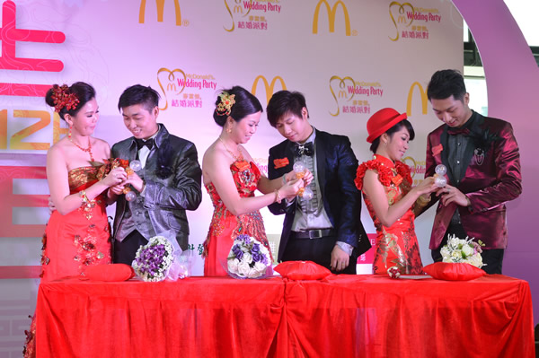 小時候,十分嚮往到麥當勞參加小學同學的森林生日會,不過,怎也想不到,長大了,連舉行婚禮,原來麥當勞都可以替你一手包辦,滿足一眾童心未泯的新人。昨日,適逢12.12.12大日子,除了矚目的山頂世紀婚禮之外,麥當勞亦藉著這個大日子,特意為10對愛侶呈獻難忘的中式「麥當勞結婚派對」體驗,為他們締造十全十美的難忘時刻。