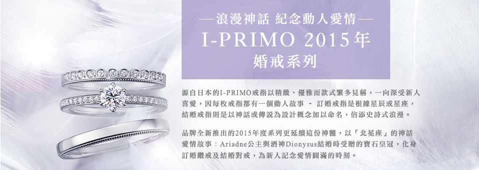 浪漫神話 紀念動人愛情 I-PRIMO 2015年婚戒系列