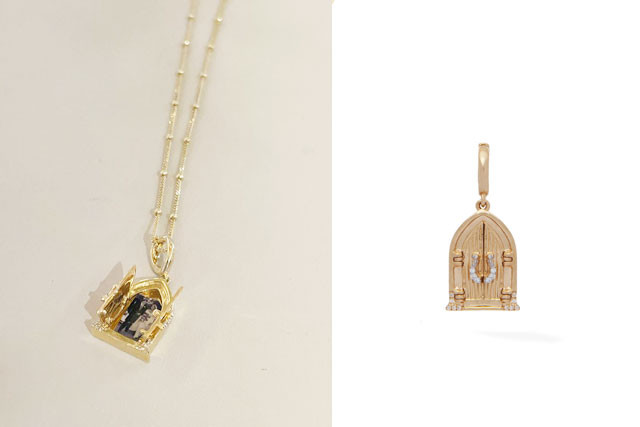 我希望「Love & Commitment愛與誓言」的系列具有魅力,而當我回想起自己婚禮的那天,其實婚禮是一個非常私人的活動,我想不出還有什麼比經典的教堂門更能代表傳統婚禮的日子,而系列中一款教堂門設計的吊飾,你可以在裡面藏一張小照片並在背面添加個人雕刻,小門打開令人愉悅,這也是我對工作細節著迷的地方!