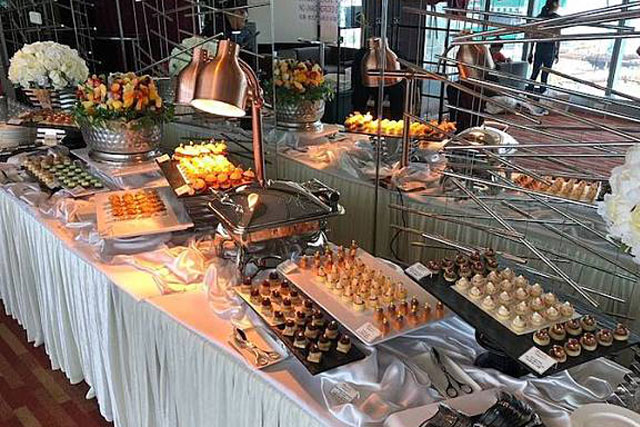*食物枱婚禮擺設、按套餐食物數量提供保溫爐、食物暖燈、食物擺碟、不鏽鋼食物夾、自助餐檯連布)