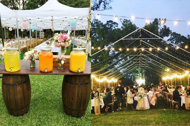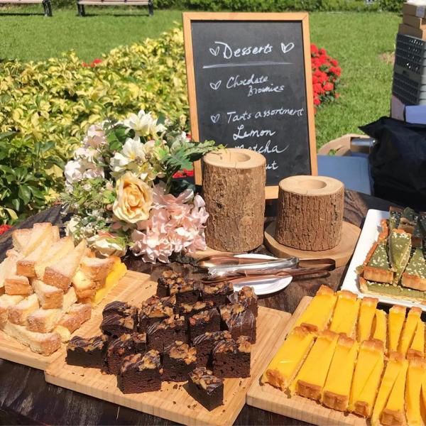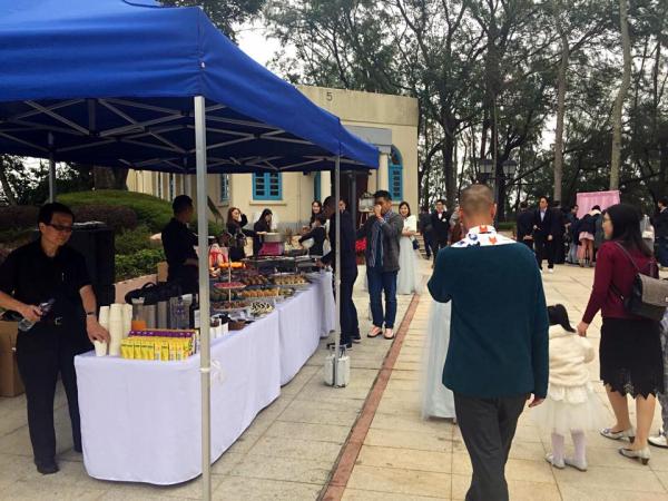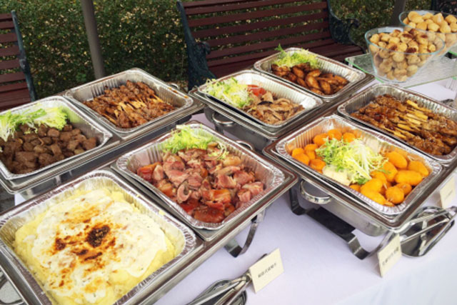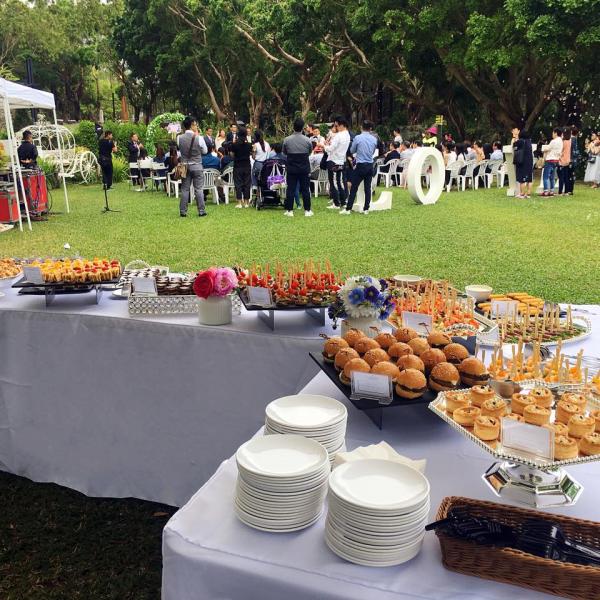 — 自助食物枱連彷草地婚禮擺設、按套餐人數及食物數量提供保溫爐、食物暖燈、食物擺碟、不鏽鋼食物夾、自助餐檯連布、即棄餐具、紙碟 、紙杯、紙巾(餐具只供應本公司到會之食物及飲品)