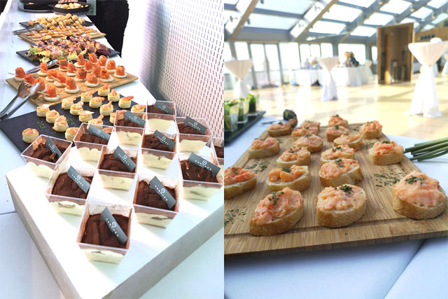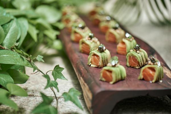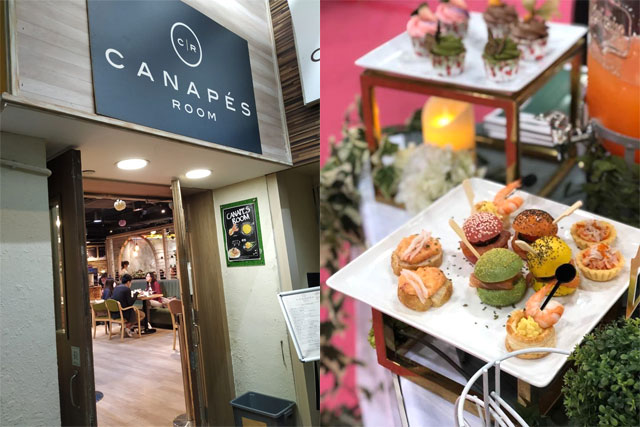 Canapes Room的到會服務安排同樣深得新人喜愛,餐廳主打法式精緻小食,提供的婚禮到會有Cocktail Party、婚禮午宴及戶外自助餐宴會等形式,餐點種類和款式相當多元化,包括:精緻的前菜、沙律吧、海鮮吧、薄餅吧、BBQ吧等,婚禮到會的菜單更可讓新人自由組合,同樣餐點方面亦照顧到素食者的需要。