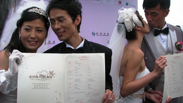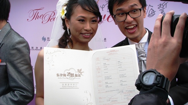 在張翼雄律師主持婚姻監禮以及一眾親友的祝褔及見證下,11對新人在這個世紀時刻於山頂廣場攜手說出「我願意」,隨即交換戒指以及來個世紀之吻以及簽署婚書,整個過程令一眾親友以及來賓既興奮又感動!