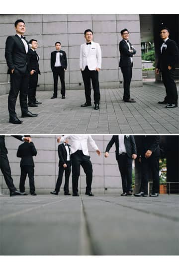 平日嘻笑怒罵的兄弟幫,為了朋友大婚之日,紛紛穿起帥氣筆直的西裝,襯托新郎的俊朗。