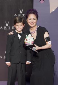 其中名為Salamance系列的首飾,更加入楊千嬅的個人元素,把她心愛的淡紫色及淡粉紅色的晶鑽,鑲嵌在頸鏈、耳環、戒指及手鐲上,散發著年青、活力的時同,又滲透著女性的溫柔及韻味,非常璀璨奪目。在發佈會上,大會更貼心地為千嬅送上結婚禮物,寓意祝千嬅造人成功,一索得男。